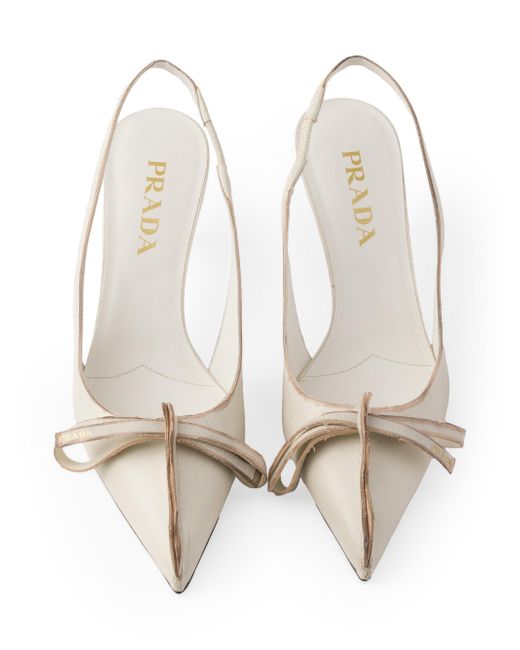 Screen-printed logo Leather and rubber sole with metal lettering logo Leather-covered heel, height 55mm / 2.2'' Imported 100% Calf Leather. Lsd Rtw - Prada Rtw > Prada > Saks Fifth Avenue. Prada. Color: Beige Khaki. Size: 5.