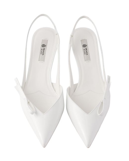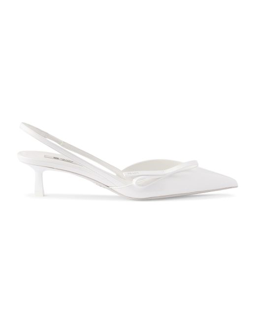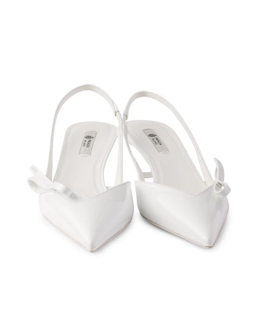 Screen-printed logo Leather sole with rubber heel tip and metal lettering logo Varnished heel, height 45 mm / 1.8'' Imported 100% Calf Leather. Lsd Rtw - Prada Rtw > Prada > Saks Fifth Avenue. Prada. Color: White. Size: 6.