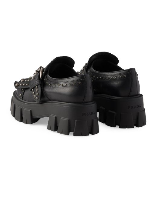 Upper with metal studs Leather lining Rubber sole, 55mm / 2.2'', with hot-stamped logo Removable leather-covered insole 100% Calf Leather Imported. Lsd Rtw - Prada Rtw > Prada > Saks Fifth Avenue. Prada. Color: Black. Size: 5.5.