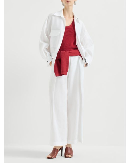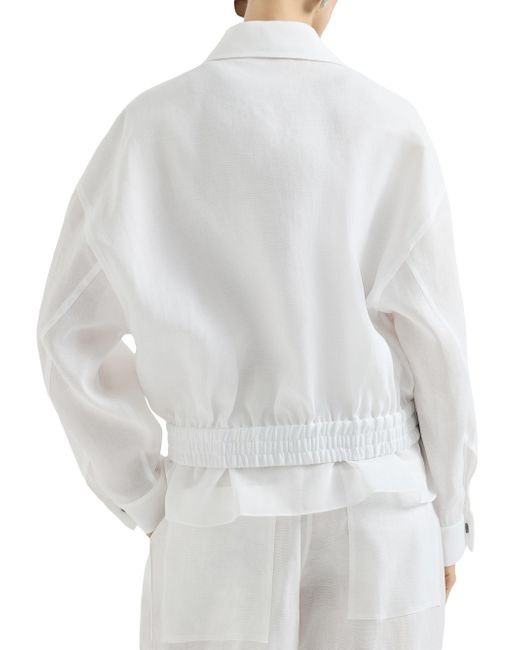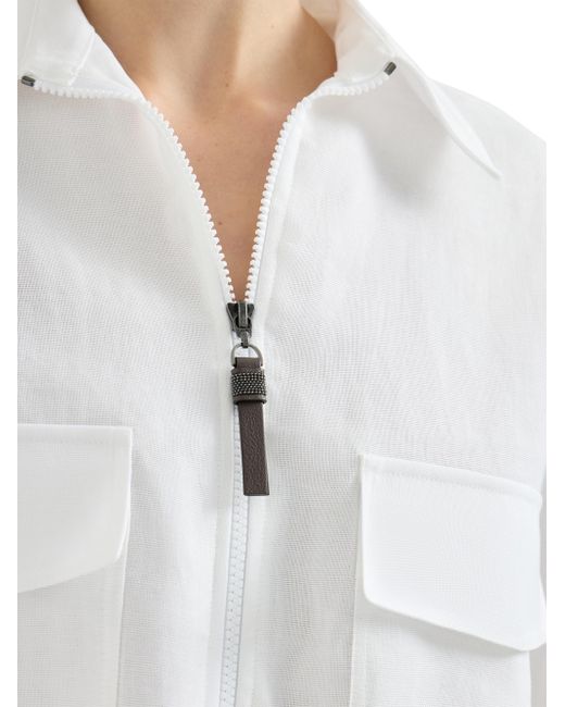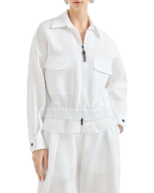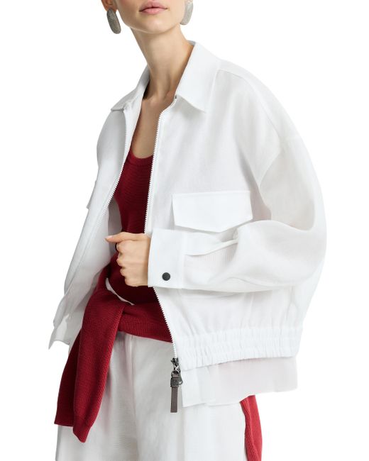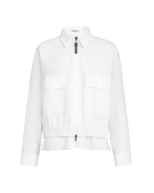 Cotton outerwear jacket with shiny zipper pull. Two-way zip closure Shirt-style collar Snap cuffs Patch hand pockets with flap Taffeta lining Elasticized hem Request dry cleaning at specialist cleaner's only, do not bleach. Do not tumble dry, iron at low temperature 100% cotton Made in Italy. Lsd Rtw - Brunello Cucinelli Rtw > Brunello Cucinelli > Saks Fifth Avenue. Brunello Cucinelli. Color: White. Size: Medium.