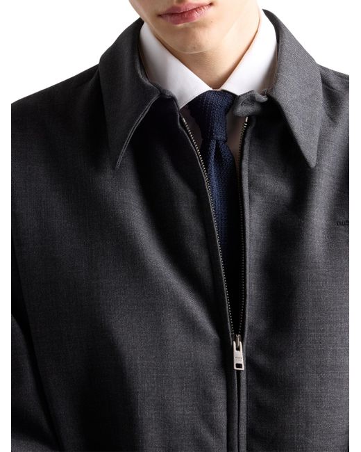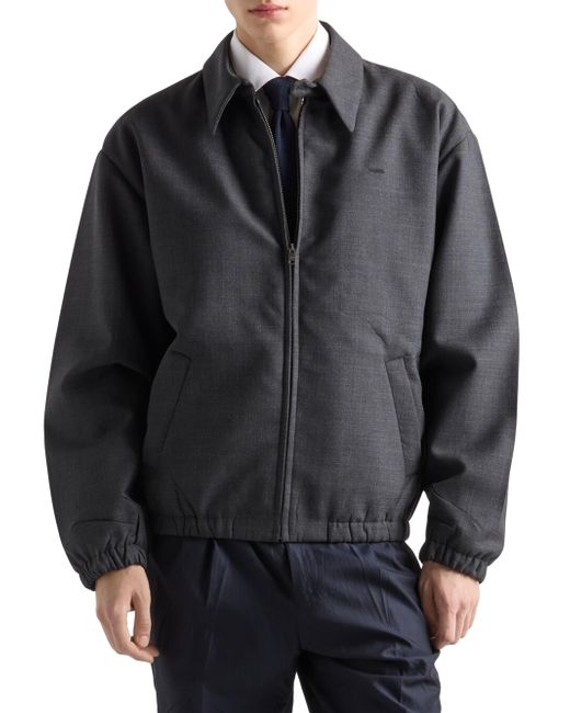 Regular fit Shirt-style collar Straight sleeves Zipper closure Wide welt pockets Elasticized cuffs Drop shoulder Straight hem Lined in fabric and wadding Embroidered lettering logo on the front The creases are an intrinsic feature due to pressing of the finished garment Imported 100% Fleece Wool. Lsd Rtw - Prada Rtw > Prada > Saks Fifth Avenue. Prada. Color: Grey. Size: 38.