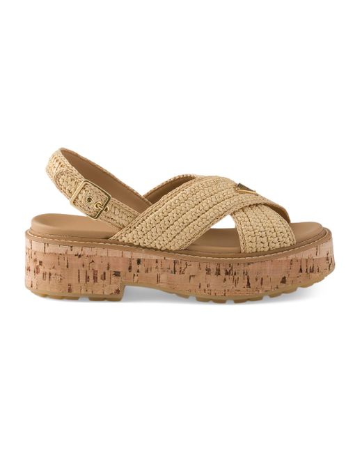 Upper with ankle strap and buckle Enameled metal triangle logo Monoblock rubber sole, 55mm / 2.2'' with hot-stamped logo Cork-covered sole Imported 100% Viscose. Lsd Rtw - Prada Rtw > Prada > Saks Fifth Avenue. Prada. Color: Beige Khaki. Size: 7.
