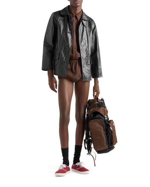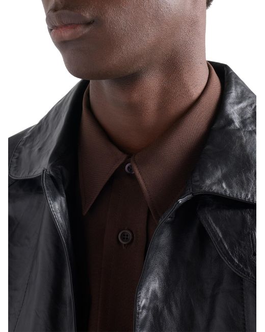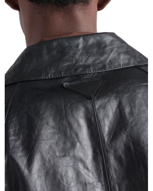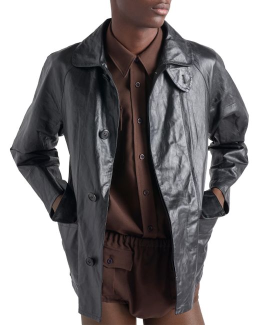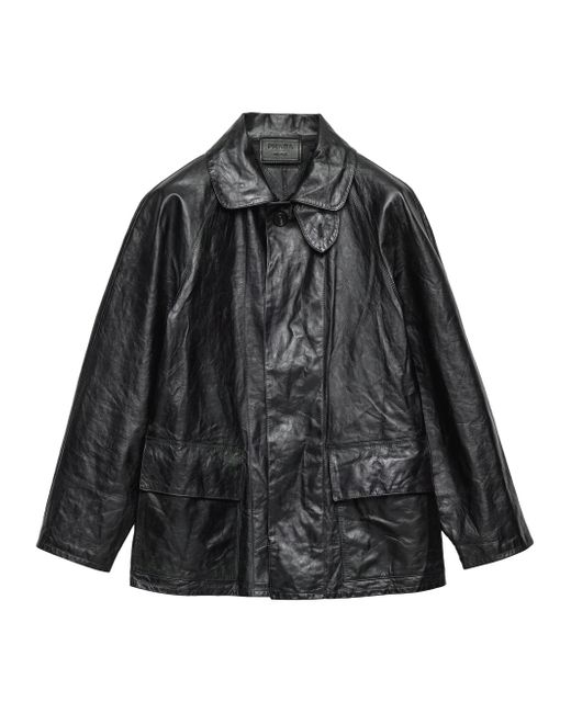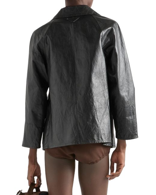 Lined garment Regular fit Center button closure Notch lapel Raglan sleeves Flapped patch pockets Leather triangle logo on the back Vintage treatment Imported 100% Calf Leather. Lsd Rtw - Prada Rtw > Prada > Saks Fifth Avenue. Prada. Color: Black. Size: 36.
