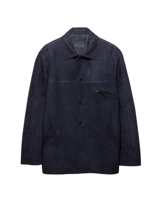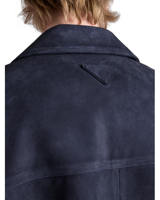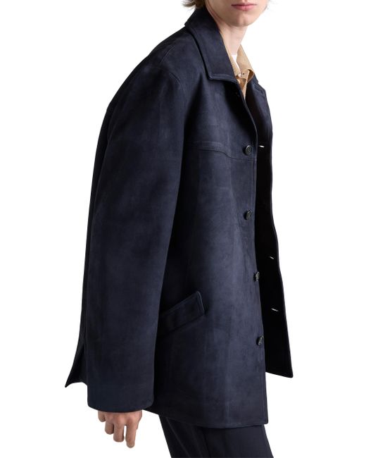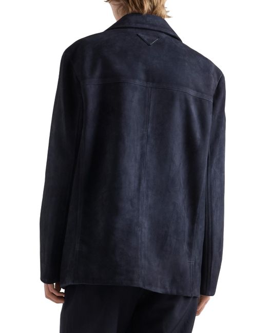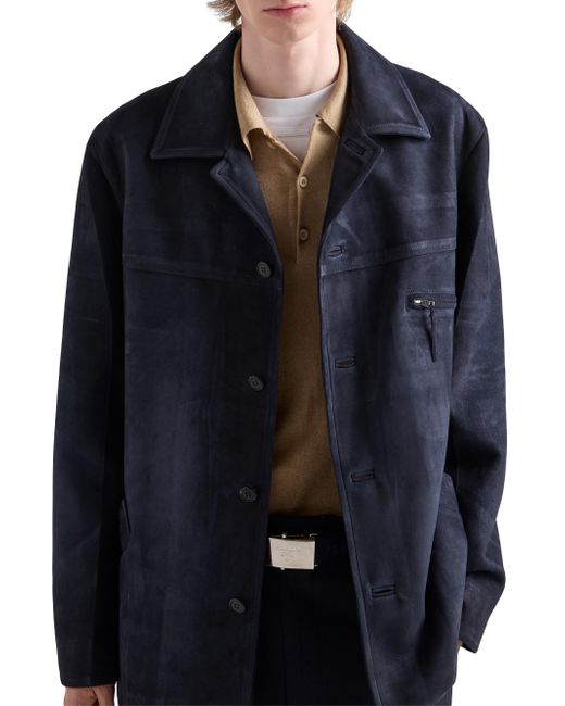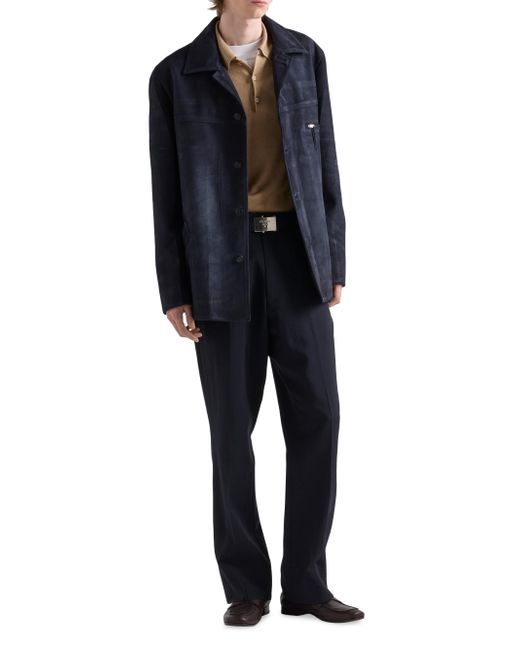 Lined garment Regular fit Center button closure Classic lapels Straight sleeves Wide welt pockets Leather triangle logo Vintage treatment Pressed finished garment 100% Lamb Leather Imported. Lsd Rtw - Prada Rtw > Prada > Saks Fifth Avenue. Prada. Color: Blue. Size: 38.