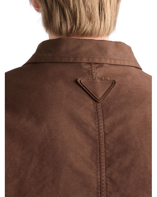 Regular fit Shirt-style collar Straight sleeves Button closure Patch pockets Buttoned cuffs Regular shoulder Straight hem Unlined garment Fabric triangle logo 100% Cotton Imported. Lsd Rtw - Prada Rtw > Prada > Saks Fifth Avenue. Prada. Color: Brown. Size: Medium.