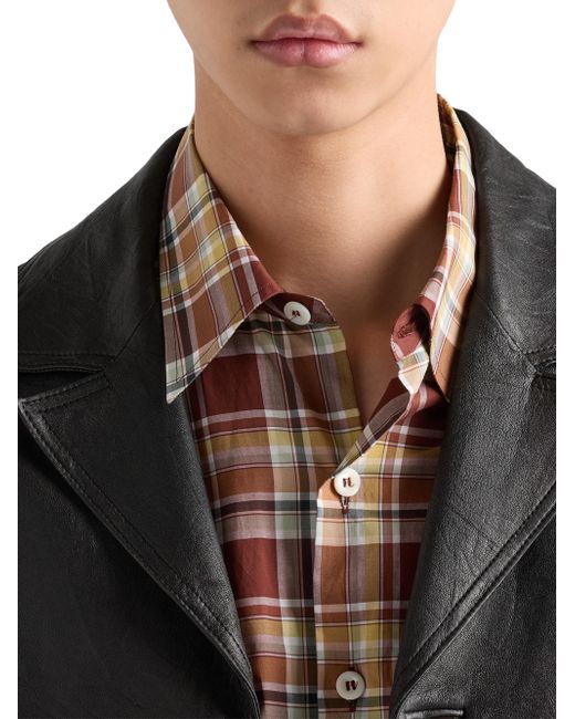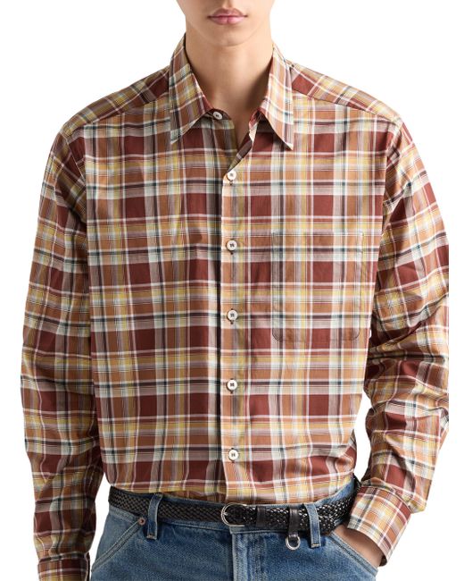 Oversized fit Classic collar Small patch pocket Rounded hem Classic cuff Mother-of-pearl button closure Fabric triangle logo on the back 100% Cotton - 100% Trochus Niloticus Imported. Lsd Rtw - Prada Rtw > Prada > Saks Fifth Avenue. Prada. Color: Brown. Size: 16.