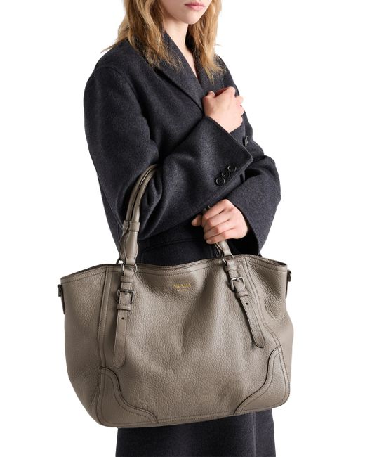 Leather handles Detachable, adjustable deerskin shoulder strap Removable key ring Metal hardware Embossed lettering logo on the front Magnetic closure Logo-print nylon lining with two pockets, including one with a zipper Imported 100% Cervus Elaphus Scot (Leather) 38 cm W x 32 cm H x 14 cm L / 15'' W x 12.6'' H x 5.5'' L. Lsd Handbags - Prada Handbags Access > Prada > Saks Fifth Avenue. Prada. Color: Grey.