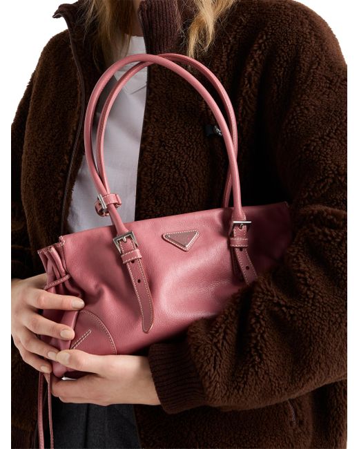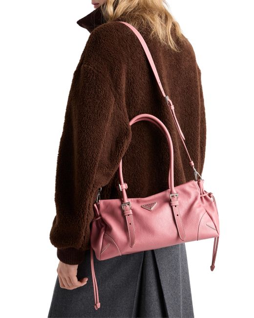 Leather handles, drop 22 cm Detachable, adjustable shoulder strap. Maximum length 100 cm - Minimum length 90 cm - Maximum drop 50 cm - Minimum drop 45 cm Metal hardware Enameled metal triangle logo on the front Zipper closure Logo-print nylon lining with zipper pocket Imported 100% Calf Leather 32W x 19.5H x 10.5L cm / 12.5W x 7.6H x 4.1L in. Lsd Handbags - Prada Handbags Access > Prada > Saks Fifth Avenue. Prada. Color: Pink.