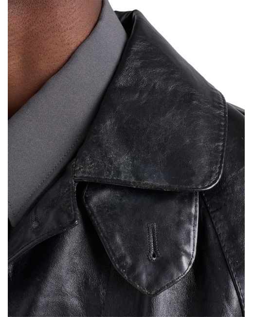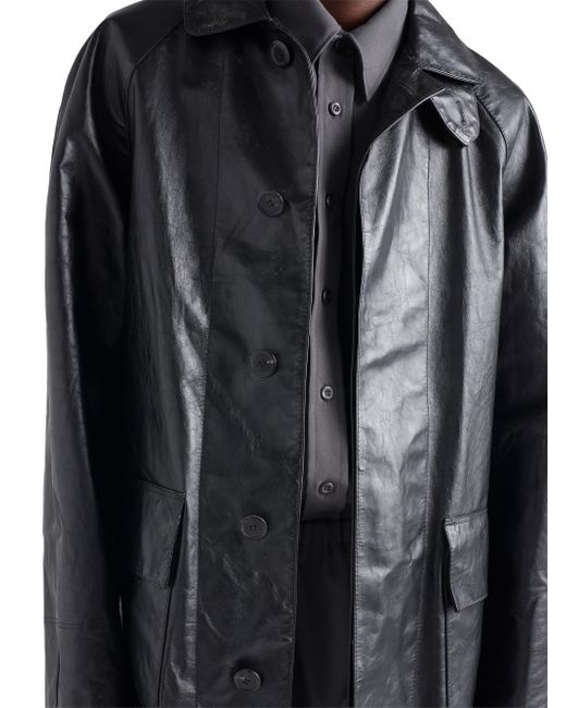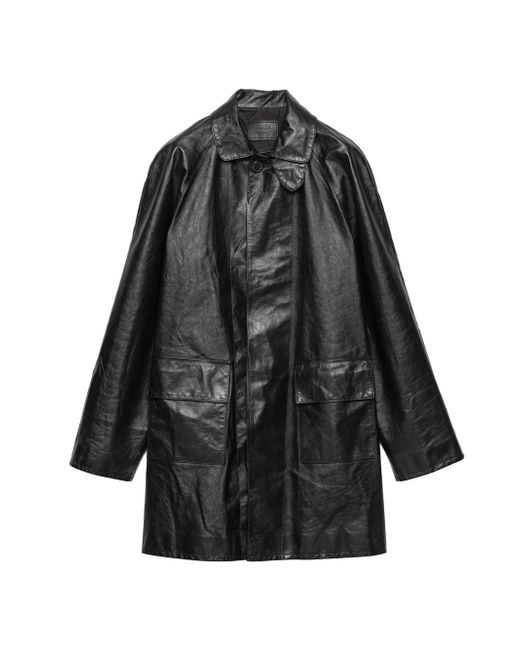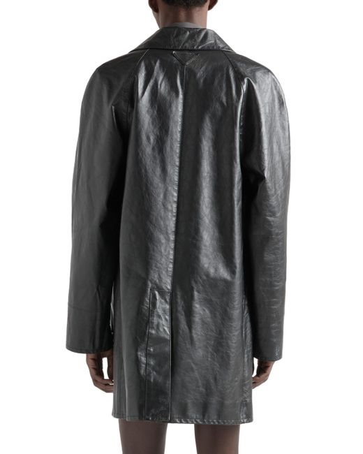 Lined garment Regular fit Center button closure Notch lapel Raglan sleeve Flapped patch pockets Leather triangle logo on the back Vintage treatment Imported 100% Calf Leather. Lsd Rtw - Prada Rtw > Prada > Saks Fifth Avenue. Prada. Color: Black. Size: 42.
