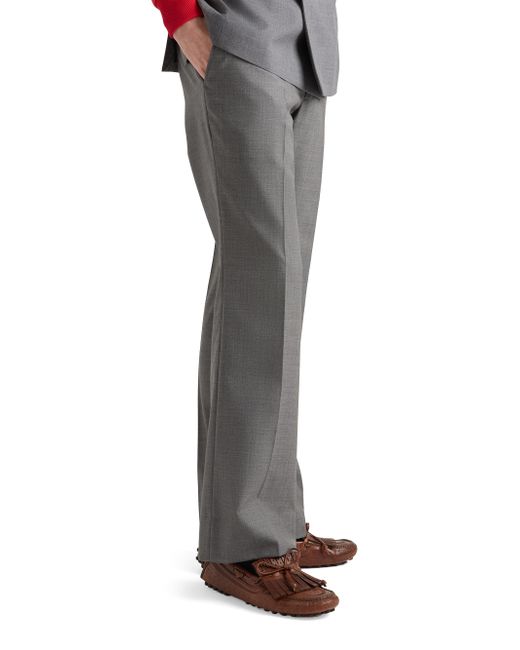 Trumpet flare Constructed waistband Zipper fly with concealed hook Angled front slash pockets Back welt pockets with button Hem width: 25 cm Sartorial logo label on the back Imported 100% Fleece Wool. Lsd Rtw - Prada Rtw > Prada > Saks Fifth Avenue. Prada. Color: Grey. Size: 36.