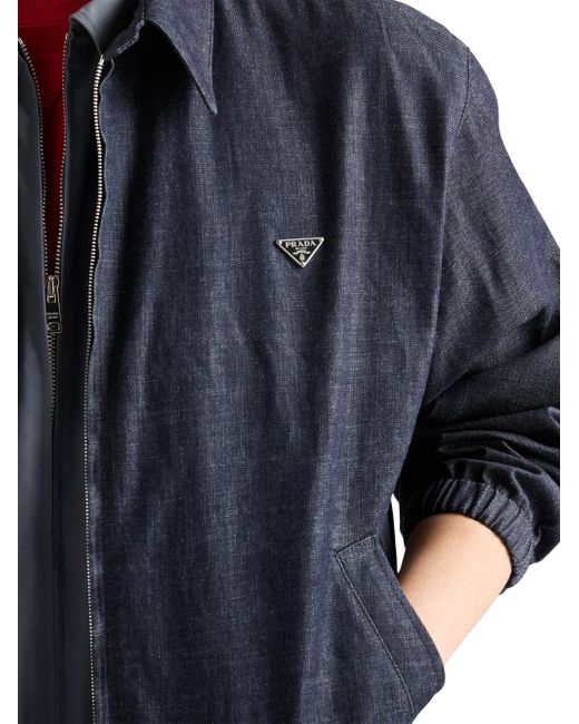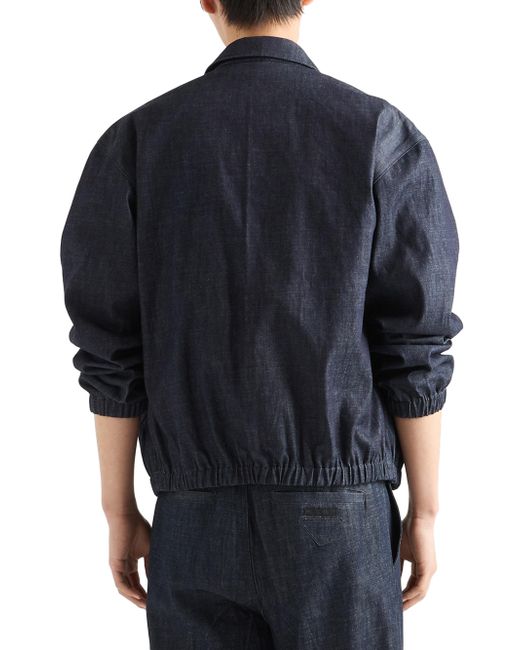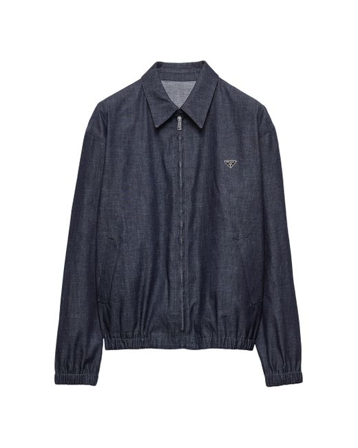 Raw denim treatment Partially lined garment Boxy fit Shirt-style collar Long sleeves, elasticized cuffs Zipper closure on the front Low welt pockets Center-back length: 66 cm, Size: 48 Triangle logo Straight elasticized hem Pressed garment 100% Cotton Imported. Lsd Rtw - Prada Rtw > Prada > Saks Fifth Avenue. Prada. Color: Blue. Size: 40.