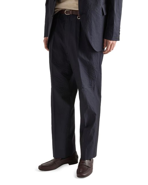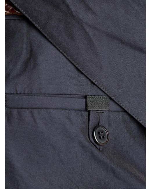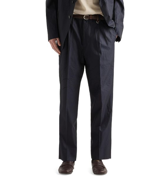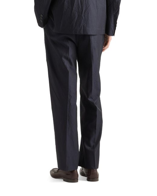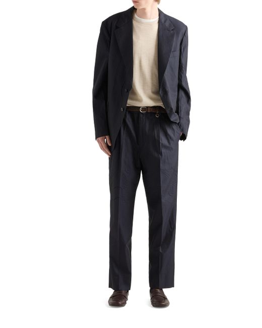 Classic fit Constructed waistband Zipper fly with button Angled front slash pockets Back welt pockets with button Hem width: 22 cm Sartorial logo label on the back The creases and folds are an intrinsic feature due to pressing of the finished garment Imported 65% Cotton, 35% Silk. Lsd Rtw - Prada Rtw > Prada > Saks Fifth Avenue. Prada. Color: Blue. Size: 30.