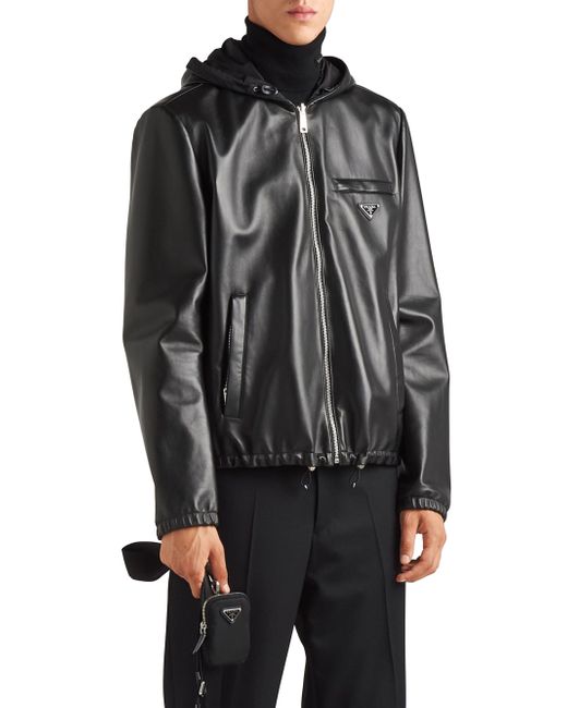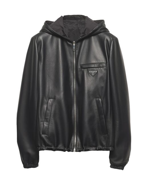 Reversible and lined Regular fit Center zipper closure Hooded collar Straight sleeves and elasticized cuffs Vertical zipper pockets and small horizontal zipper pocket Elastic drawstring hem Enameled metal triangle logo Pressed finished garment Imported 100% Lamb Leather - 100% Recycled Polyamide. Lsd Rtw - Prada Rtw > Prada > Saks Fifth Avenue. Prada. Color: Black. Size: 50.
