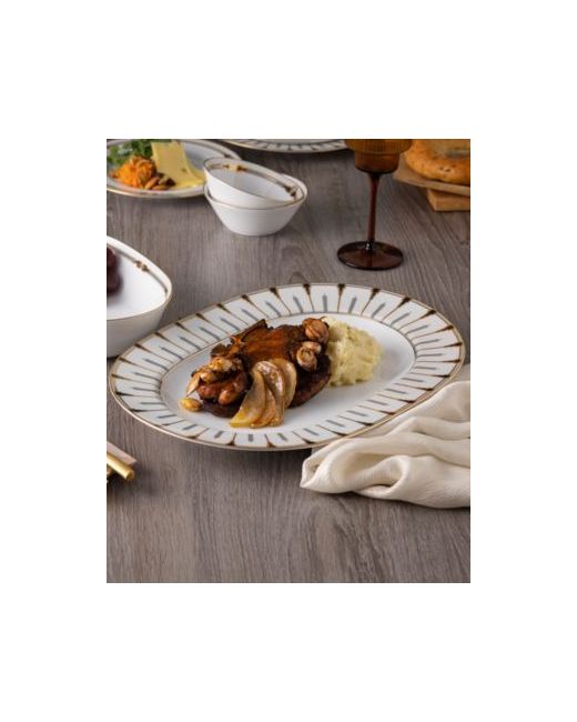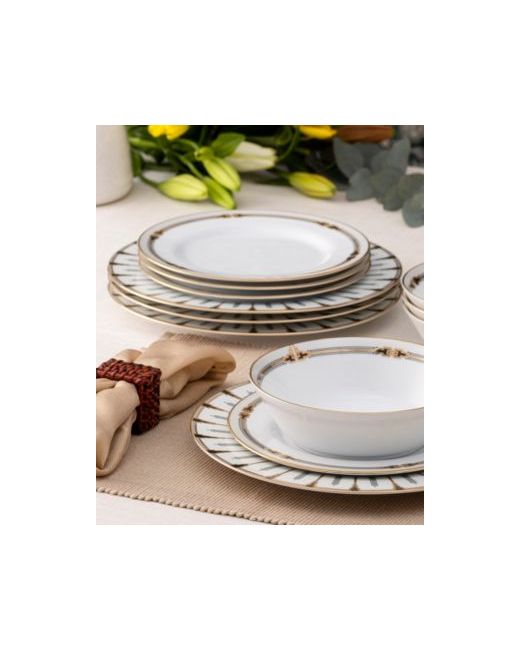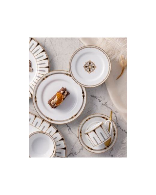 Thoughtfully composed for individual dining, this Noritake Empire Gold place setting features coordinated deco motifs across porcelain essentials. Golden banding and durable craftsmanship deliver everyday reliability with an ornamental elegance.