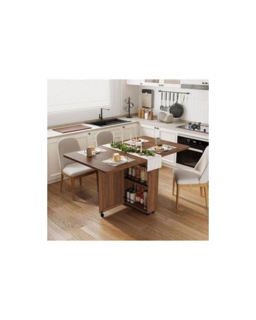 Space-Saving Folding Dining Table:Ideal for modern urban living, this stylish and versatile folding dining table adapts to your lifestyle-perfect for meals, work, studying, or entertainment. Its compact design maximizes space, making it a top choice for small apartments, studios, and suitesMultifunctional and Compact:Seats 4 comfortably when fully extended.Folds down easily for compact storage or alternative uses (entryway table, sofa side table, or kitchen island)Smart and Convenient Design:6 smooth-rolling 360° wheels (4 lockable for stability).Front storage drawer and cabinet-perfect for tableware, wine bottles.Rear double-layer shelves with anti-drop metal frames-keeps items secure and organizedSturdy and Durable Build:Made from high-quality engineered wood-scratch-resistant, easy to clean, and built to last.Stable enough for home, office, or small dining spacesHassle-Free Setup and Support:Easy assembly.