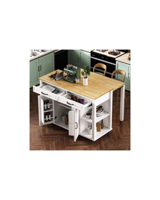 Elevate your kitchen functionality and style with this high-end mobile kitchen island, designed to meet all your cooking, prep and dining needs with unbeatable versatility and sturdiness. The 47.2"×19.7" spacious main countertop provides plenty of room for daily meal prep, while the 13.8"×41.7" extendable table with lockable wheels and full-extension slides expands your workspace instantly, perfect for family dinners or hosting small gatherings. Built with a solid structure, the extendable table is reinforced by angle irons and thick legs for maximum stability, and the cabinet features an adjustable shelf to customize storage for all your kitchenware, from small utensils to large pots and pans.