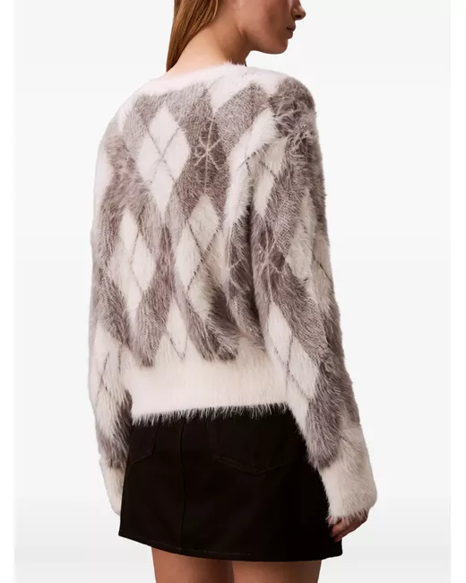 argyle-pattern buttoned cardigan