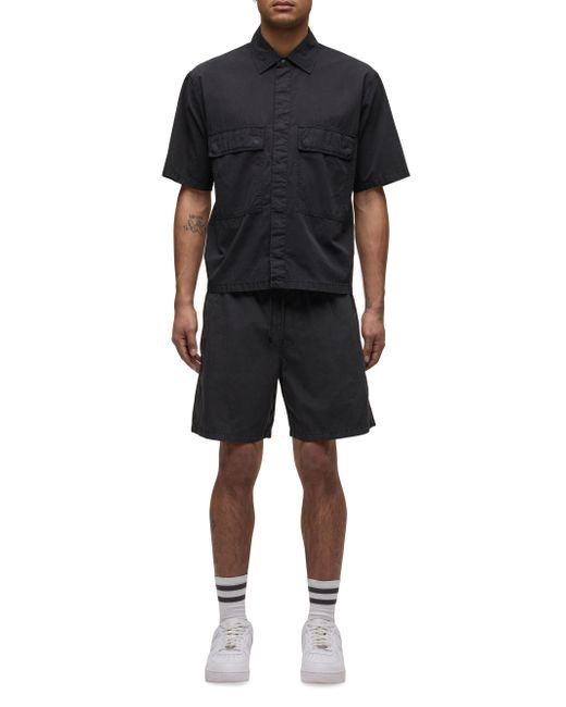 Designed with a relaxed silhouette, these drawstring shorts from Hudson Jeans are crafted from a cotton-blend fabric and finished with an elasticized waist for easy wear. Drawstring waist Pulls on 70% cotton/30% nylon Machine wash Imported SIZE & FIT Relaxed fit Rise: about 12" Inseam: about 6.5" Leg opening: about 25.5" Model measurements: 6'2" tall, 31" waist Model is wearing a US size Medium. Mens Denim & Contemp - Contemp Denim And Bottom > Hudson Jeans > Saks Fifth Avenue. Hudson Jeans. Color: Black. Size: Large.