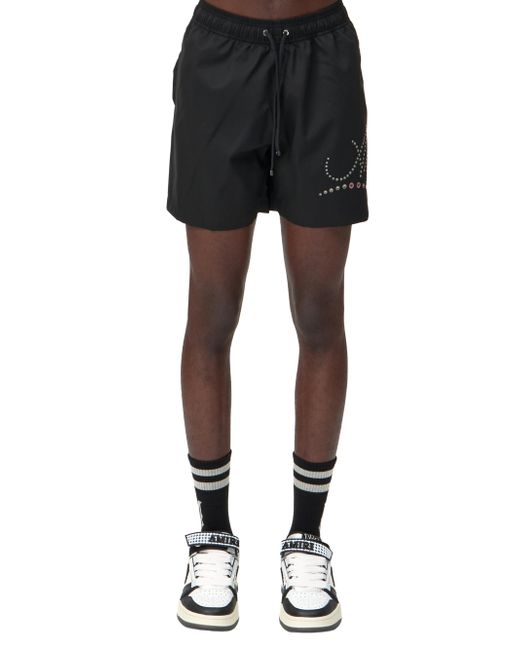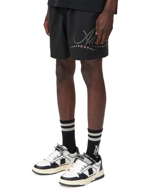 These swim trunks are detailed with a studded Amiri logo print on the left hem. A drawstring waistband and side on-seam pockets lend added comfort to this pair. Drawstring waistband Side on-seam pockets 100% polyester Dry clean Imported SIZE & FIT Model measurements: 6'2" tall, 31" waist Model is wearing a US size Medium ABOUT THE BRAND Designer and California native Mike Amiri got his start making handcrafted pieces for rockstars to wear on stage. He brings the same L.A. rocker aesthetic to his eponymous label, which is known for its deconstructed jeans, leather jackets and broken-in flannels. Men Advcd Dsgnr - Advanced Designer Collec > Amiri > Saks Fifth Avenue. Amiri. Color: Black. Size: XXXL.