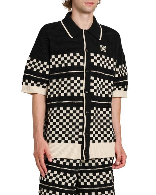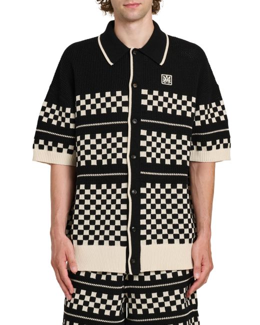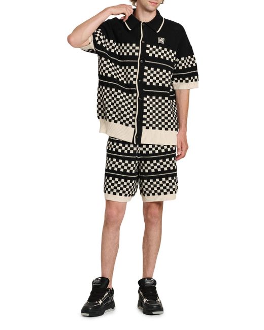 Knit from wool, this button-front shirt from Amiri features a checkered design. Spread collar Short sleeves Rib-knit trim Button-front closure 100% wool Dry clean Made in Italy SIZE & FIT Model measurements: 6'2" tall, 40" chest, 31" waist Model is wearing a US size Medium ABOUT THE BRAND Designer and California native Mike Amiri got his start making handcrafted pieces for rockstars to wear on stage. He brings the same L.A. rocker aesthetic to his eponymous label, which is known for its deconstructed jeans, leather jackets and broken-in flannels. Men Advcd Dsgnr - Advanced Designer Collec > Amiri > Saks Fifth Avenue. Amiri. Color: Black. Size: XXXL.