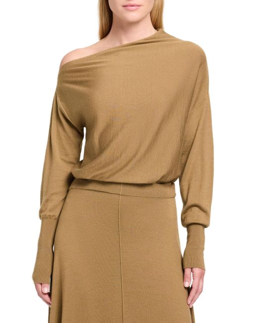 Knit from a fine-gauge wool-silk blend, the TWP Cold Shoulder top features a slouchy off-the-shoulder design with rib-knit trim. One-shoulder neckline Long sleeves Rib-knit trim Pulls over 70% wool/30% silk Dry clean Imported SIZE & FIT About 27" from shoulder to hem Model measurements: 5'10" tall Model is wearing a US size Small ABOUT THE BRAND New York-based label TWP offers modern, effortless takes on go-to wardrobe staples. On a mission to democratize luxury, founder Trish Westcoat Pound, of Haute Hippie fame, focuses on high-quality details and subtle-yet-alluring silhouettes to create elevated, everyday pieces-all made in the U.S. with fabrics sourced from Italy. Contemporary Sportswear - Contemporary Lifestyle > Twp > Saks Fifth Avenue. TWP. Color: Ermine. Size: XS.