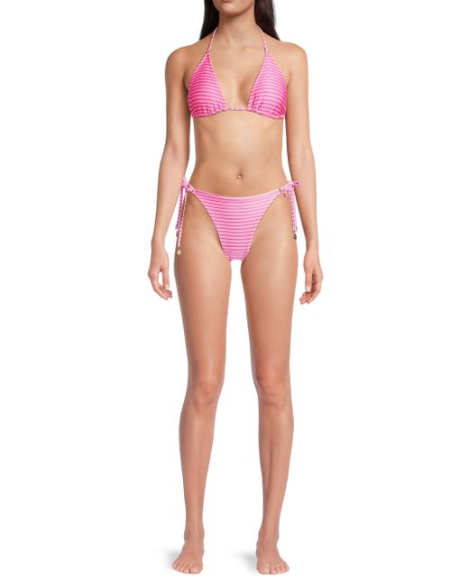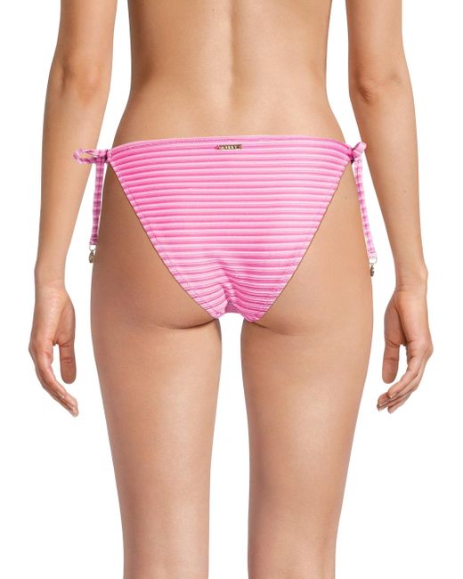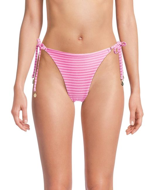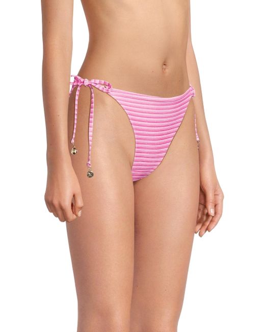 This string bikini bottom from Milly features a textured design with a shimmering striped pattern and goldtone accents at the ties. Side ties 72% polyester/20% elastane/8% polyamide Hand wash Imported Please note: Bikini top sold separately. ABOUT THE BRAND Having garnered a cult following since its Y2K inception, Milly epitomizes contemporary fashion that maintains a strong point of view, with a mission to create wardrobe go-tos that will never get lost in the crowd. The Hollywood-favorite label has grown into a global powerhouse, with offerings ranging from workwear to swimwear to eveningwear. Outerwear And Swimwear - Modern Swim > Milly > Saks Fifth Avenue. Milly. Color: Pink Multi. Size: XS.
