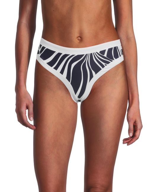From the Abstract Kai Collection. This bikini bottom from Milly features the brand's abstract Kai print and is cut in a high-rise silhouette. Elasticized waistband Full coverage Pulls on 100% linen Dry clean Imported Please note: Bikini top sold separately. ABOUT THE BRAND Having garnered a cult following since its Y2K inception, Milly epitomizes contemporary fashion that maintains a strong point of view, with a mission to create wardrobe go-tos that will never get lost in the crowd. The Hollywood-favorite label has grown into a global powerhouse, with offerings ranging from workwear to swimwear to eveningwear. Outerwear And Swimwear - Modern Swim > Milly > Saks Fifth Avenue. Milly. Color: Navy White. Size: XS.