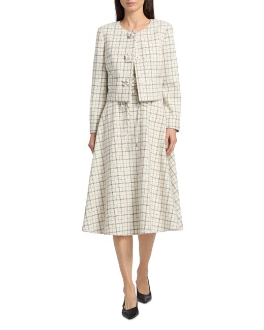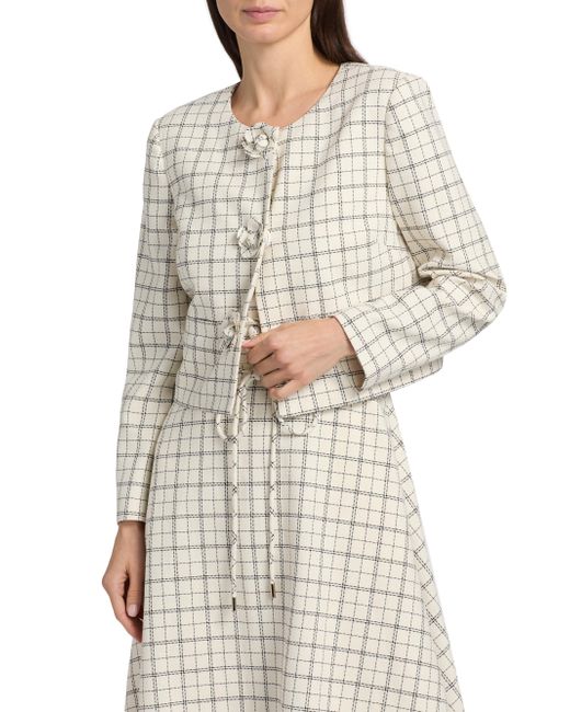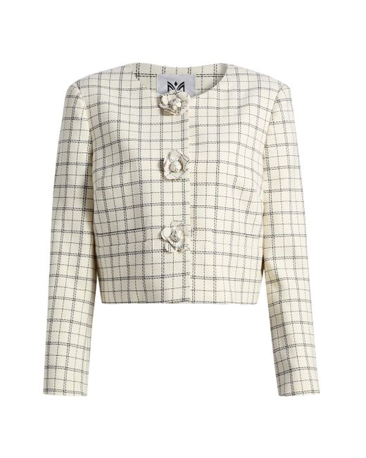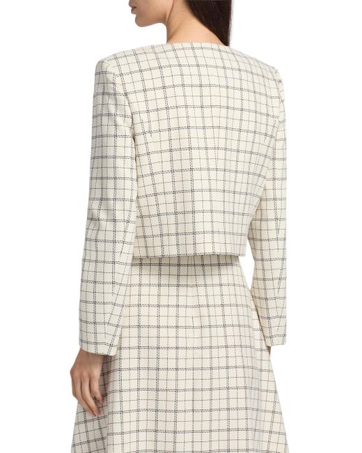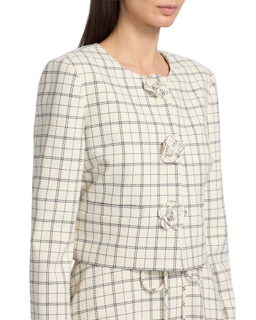 This Mika jacket from Milly features a plaid pattern, floral buttons, and side welt pockets. Round neck Long sleeves Side welt pockets Front snap closure 65% polyester/31% viscose/4% spandex Lining: 96% polyester/4% spandex Dry clean Imported SIZE & FIT About 19" from shoulder to hem Model measurements: 5'10" tall Model is wearing a US size 4 ABOUT THE BRAND Having garnered a cult following since its Y2K inception, Milly epitomizes contemporary fashion that maintains a strong point of view, with a mission to create wardrobe go-tos that will never get lost in the crowd. The Hollywood-favorite label has grown into a global powerhouse, with offerings ranging from workwear to swimwear to eveningwear. Modern Collections - Milly > Milly > Saks Fifth Avenue. Milly. Color: White Black. Size: 2.