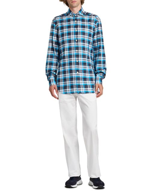 Crafted of cotton, this Kiton shirt features a bold plaid pattern. Sperad collar Long sleeves, button barrel cuffs Shirttail hem Button-front closure 100% cotton Dry clean Made in Italy SIZE & FIT Model measurements: 6'2" tall, 40" chest, 31" waist Model is wearing a US size Medium. Men Luxury Coll - Kiton Clothing > Kiton > Saks Fifth Avenue. Kiton. Color: Sky Blue. Size: 15.