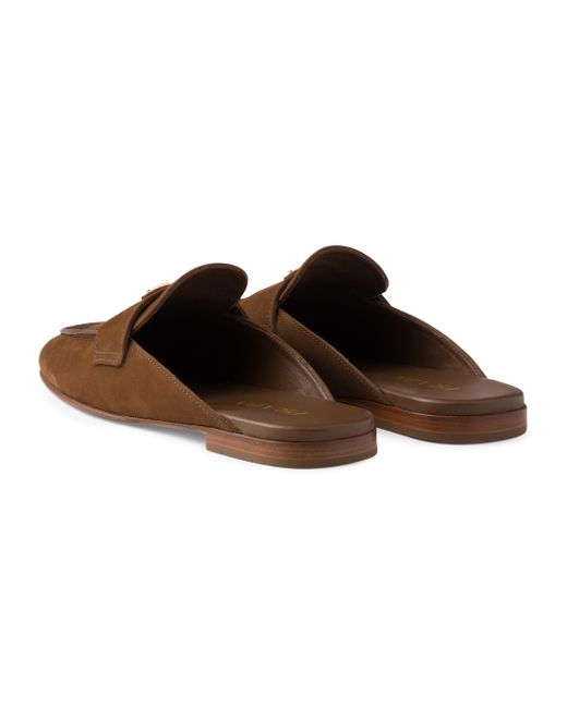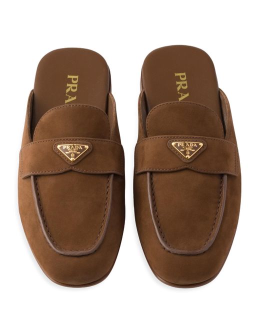 Upper with leather band Enameled metal triangle logo Leather and monoblock rubber sole with hot-stamped logo Imported 100% Calf Leather. Lsd Rtw - Prada Rtw > Prada > Saks Fifth Avenue. Prada. Color: Brown. Size: 6.