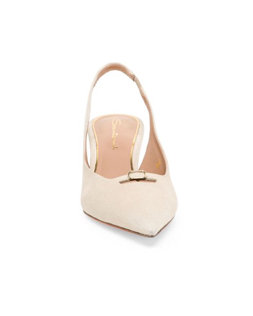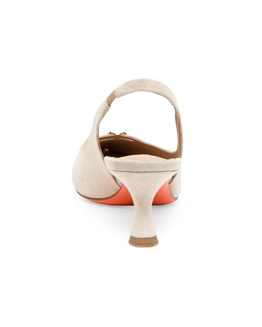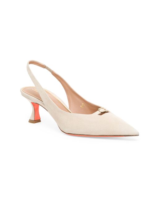 Made in Italy, Santoni's Sabine slingback pumps are crafted of supple suede and feature a point toe and sculptural heel. Point toe Slips on Suede upper Leather lining Leather sole Made in Italy SIZE Sculptural heel: about 2.25" (55mm). Women's Shoes - Designer Classics > Santoni > Saks Fifth Avenue. Santoni. Color: Beige. Size: 5.