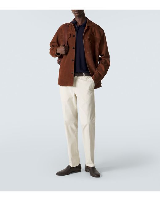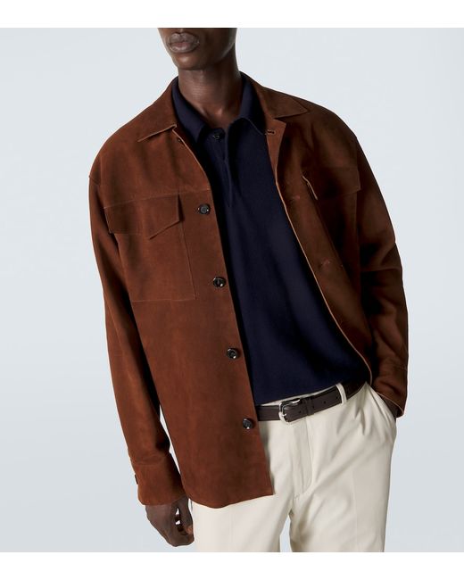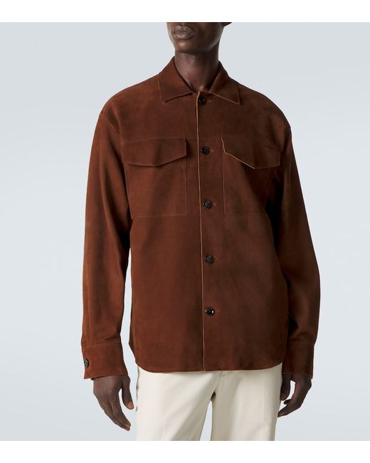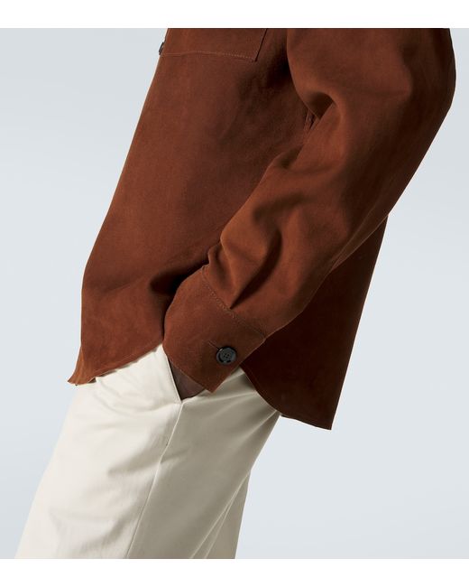 Material: 100% goat leather (suede). Care instructions: specialist clean. Made in Italy. Designer color name: Brown. Closure: buttoned front. Pockets: flap chest pockets, side slit pockets. Cuff: one button. Leather.