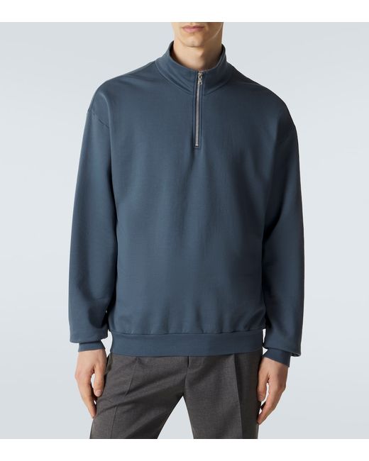 Material: 100% cotton. Care instructions: machine wash at 30 degrees. Made in Japan. Designer color name: Dusty Blue. Closure: partially zipped front. Cuff: ribbed. Hem: ribbed. Cotton.