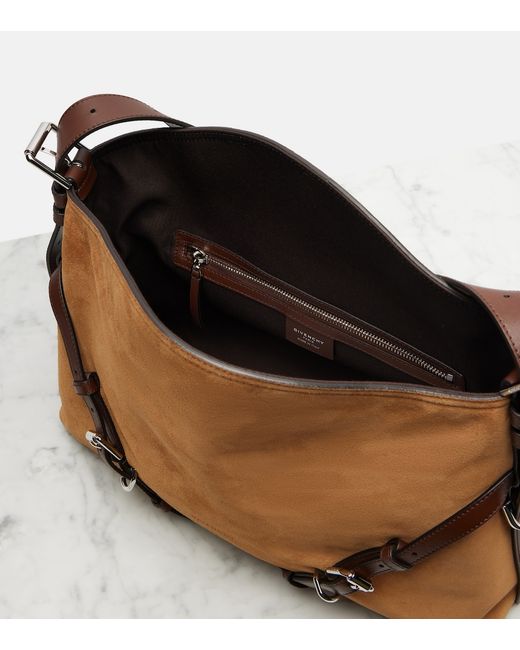 Material: leather (suede). Lining: fabric. Made in Italy. Designer color name: Sand. Hardware color: silver. Trim: leather. Leather. Detachable, adjustable shoulder strap. Internal details: internal zipped pocket, single compartment. Closure: open top.