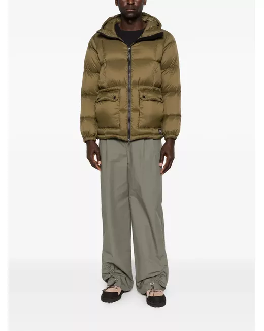olive green hooded two front flap pockets zip fastening quilted design long sleeves