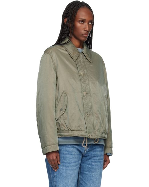 Insulated cotton- and nylon-blend twill jacket. · Garment-washed · Spread collar · Two-way zip closure with button placket · Flap pockets at front · Drawstring at hem · Adjustable button tab at cuffs · Logo hardware at back collar · Welt pocket at interior · Full quilted twill lining · Corozo hardware Supplier color: Taupe smoke twinshadow twill