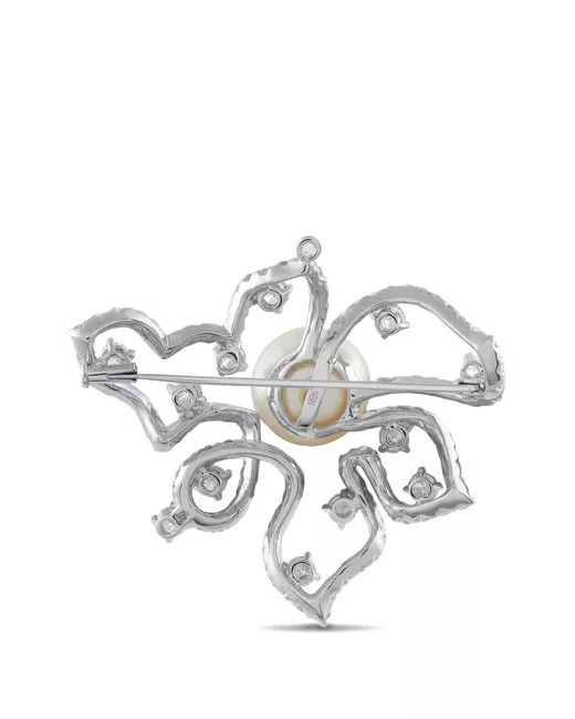 silver-tone round diamonds prong setting 14mm pearl organic form ribbon design Condition: EXCELLENT. This previously owned item is in near-perfect condition with no signs of damage or use.