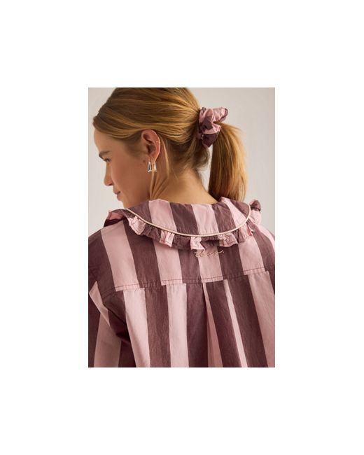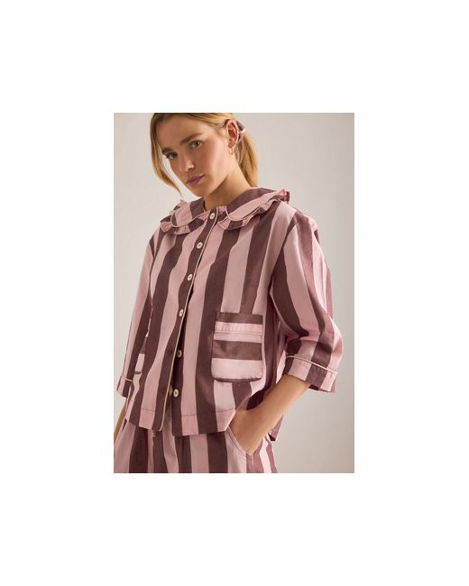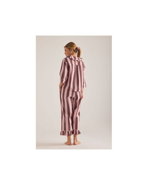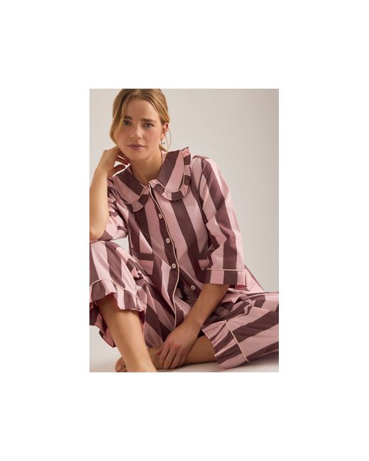 By TBCo 100% Cotton Set includes a button-front shirt and pull-on trousers Peter Pan collar Front patch pockets Side seam pockets Frill trims Machine wash Imported Long Cotton Stripe Pyjama Set by TBCo in Pink Size: XS at Anthropologie