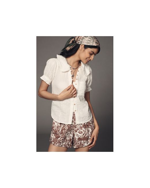 Framed with puffy ruffled sleeves and a playful Peter Pan collar, this pure cotton blouse by Pilcro is the perfect silhouette for springtime styling. The Keira Collared Button-Front Blouse by Pilcro in White, Women's Size: XS, Cotton at Anthropologie