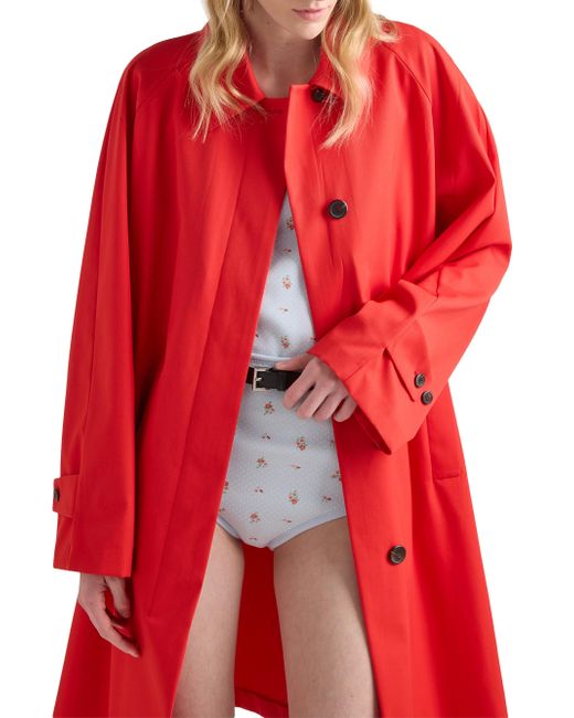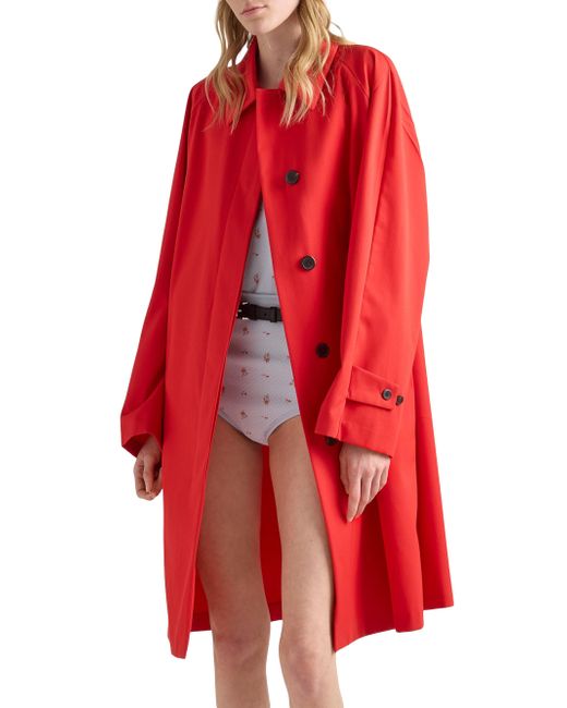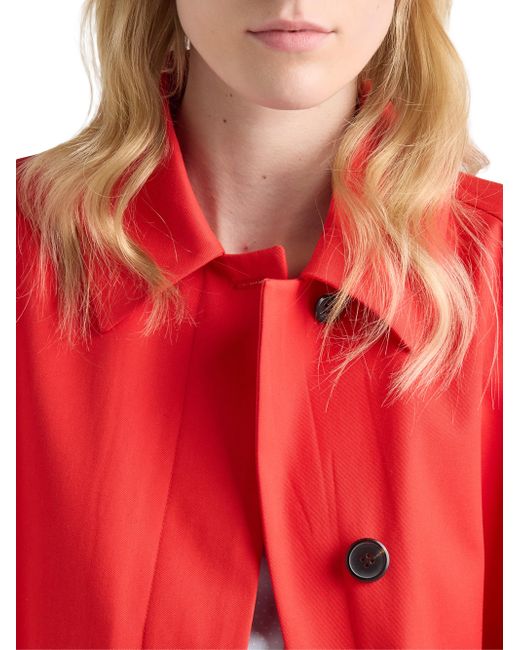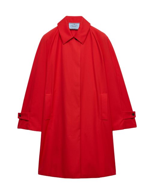 Straight fit Partially lined Shirt-style collar Concealed front button closure Raglan sleeves Diagonal pockets Back vent Logo label 35% cotton, 65% polyester Imported. Lsd Rtw - Prada Rtw > Prada > Saks Fifth Avenue. Prada. Color: Red. Size: 0.