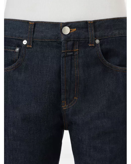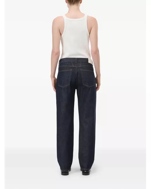 dark blue silver-tone hardware belt loops five pockets tonal topstitching straight leg