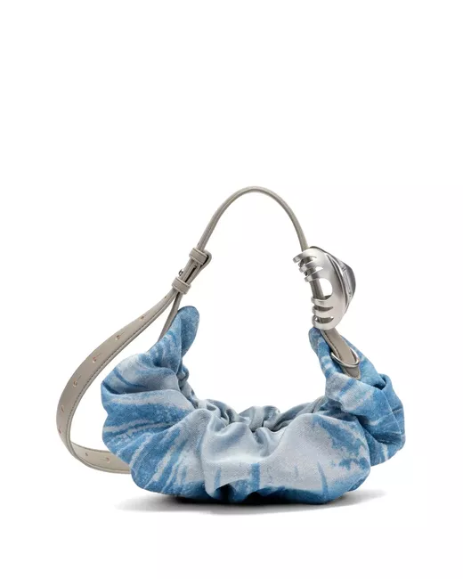 blue and white claw clip detail adjustable shoulder strap zip fastening main compartment silver-tone hardware