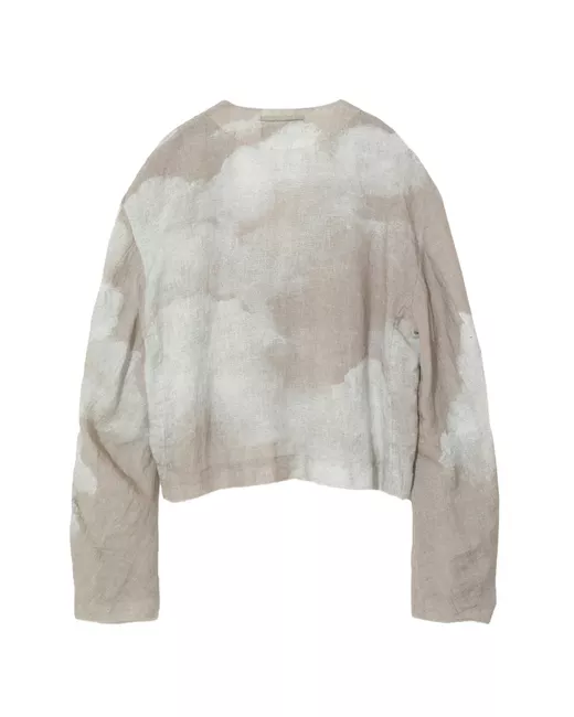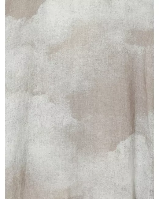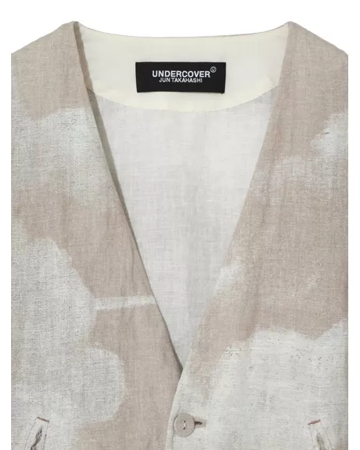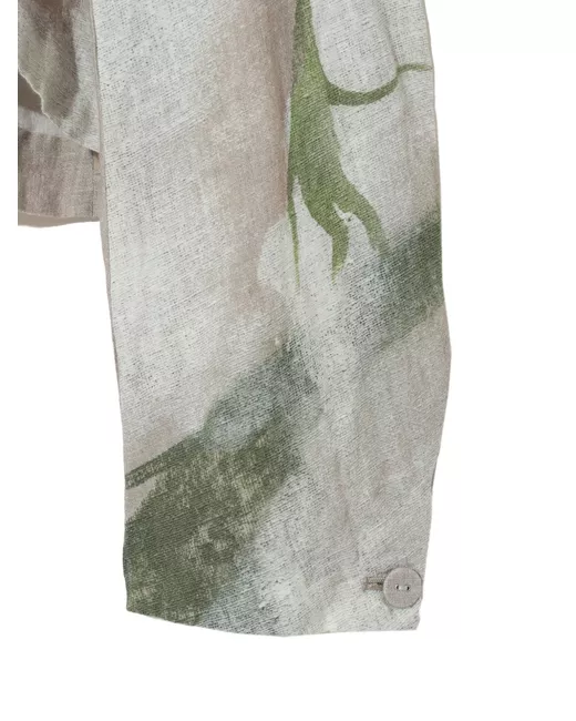 neutrals graphic-print V-neck button-fastening frayed pocket linen