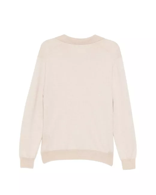 beige polo collar ribbed cuffs and hem