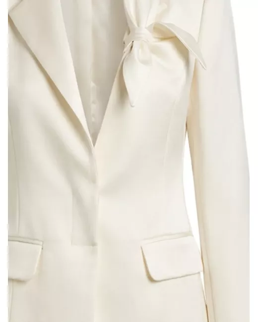 ivory bow detail flap pockets front button fastening peak lapels long sleeves