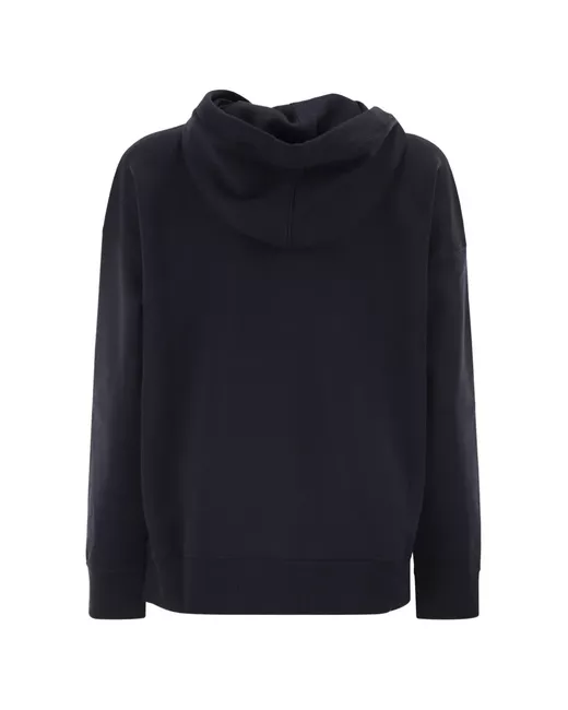 blue graphic motif drawstring hood kangaroo pocket ribbed hem and cuffs
