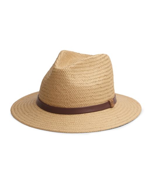 Woven from lightweight paper straw, this rag & bone fedora features a travel-friendly, packable construction designed to maintain its shape even after being folded. The classic silhouette is detailed with a contrasting leather band and a pinched crown. Paper straw Trim: leather Wipe clean Imported SIZE Brim: about 2.5"W ABOUT THE BRAND In 2002, rag & bone founder Marcus Wainwright combined his British heritage with a downtown-New York aesthetic to set the tone for the label. At the heart of the edgy-yet-laid-back brand is its focus on quality craftsmanship and attention to detail. The epitome of cool, off-duty style, it's no wonder the signature second-skin denim is favored by many. Soft Accessories - Millinery > Rag & Bone > Saks Fifth Avenue. rag & bone. Color: Light Brown. Size: Small.