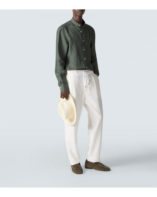 Material: 100% linen. Care instructions: dry clean. Made in Italy. Designer color name: Green. Linen. Closure: buttoned front. Cuff: buttoned. Collar: band.
