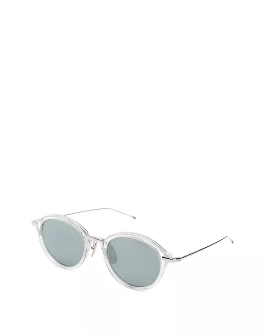 clear silver-tone hardware round frame tinted lenses nose pads stripe detail at the temple tip These glasses come with a protective case.