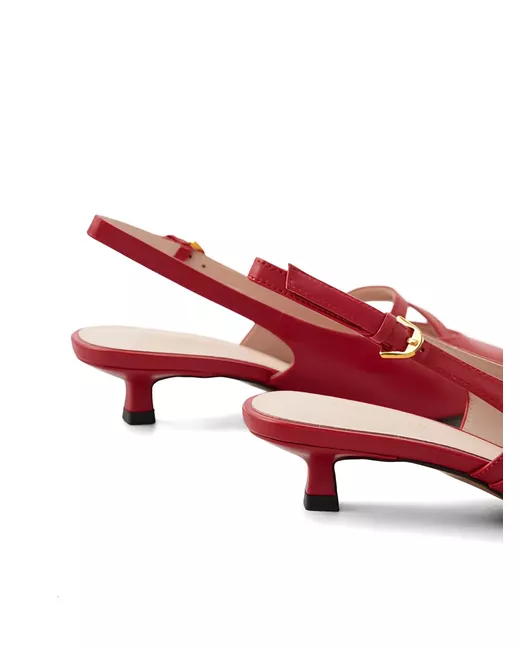 red pointed toe buckle fastening